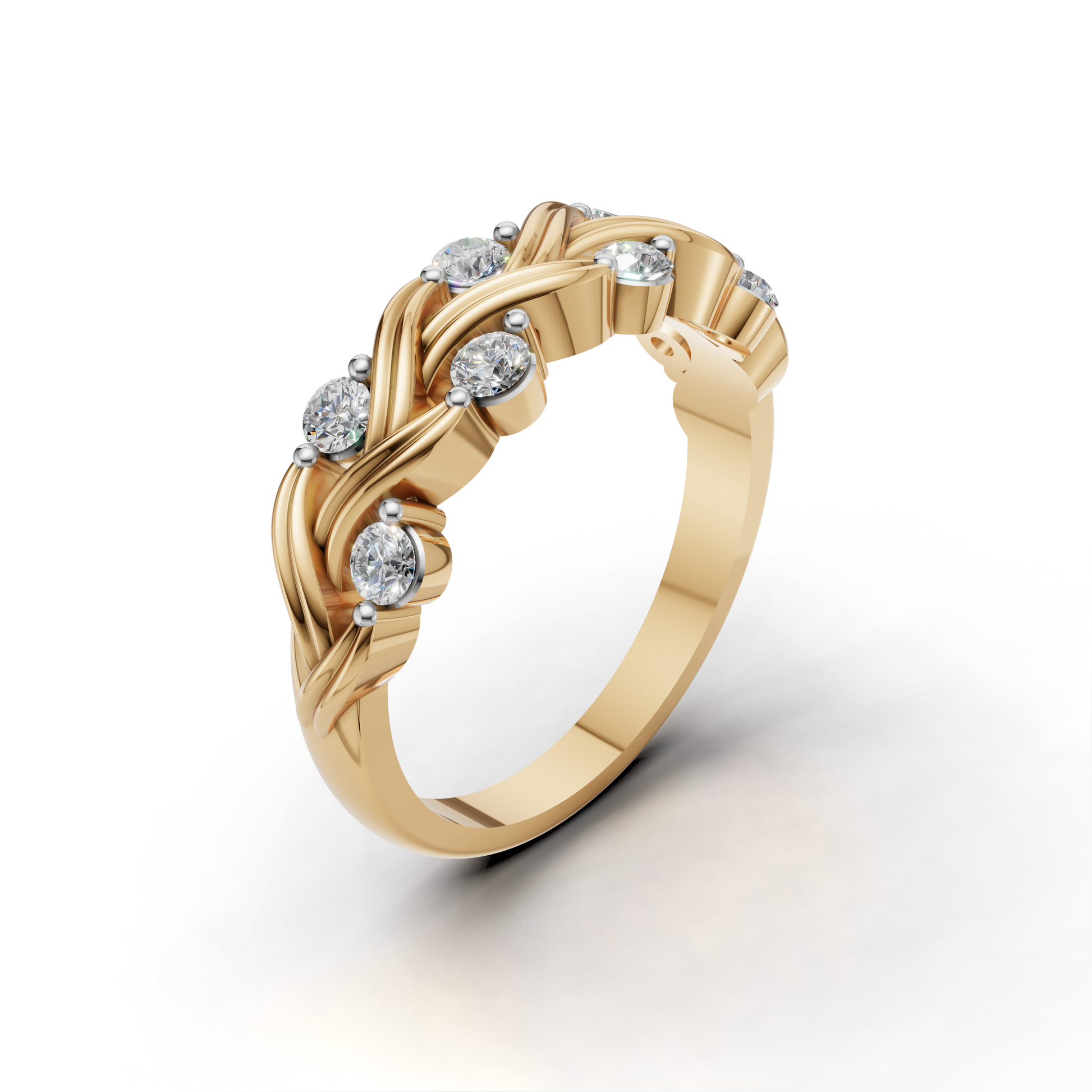 Twisted Diamond Band – Elegant Braided Design with Round Brilliant Stones